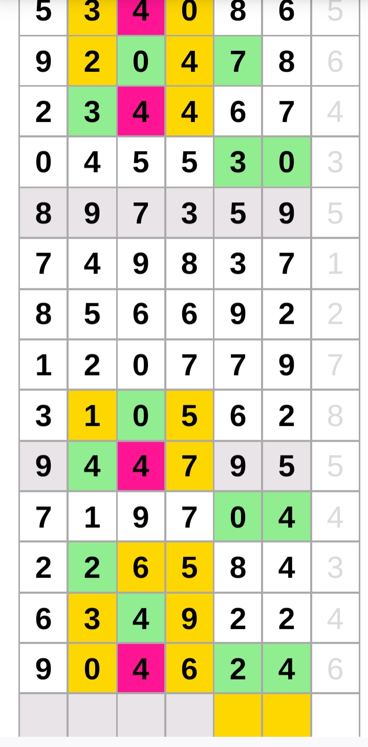 | Rumus Angka Mati berdasarkan kepala harian | 04 05 06 07 08 09 10 15 16 17 18 19 21 26 27 28 29 30 32 37 39 41 42 43 52 53 54 63 64 65 75 76 83 84 86 87 94 95 97 |