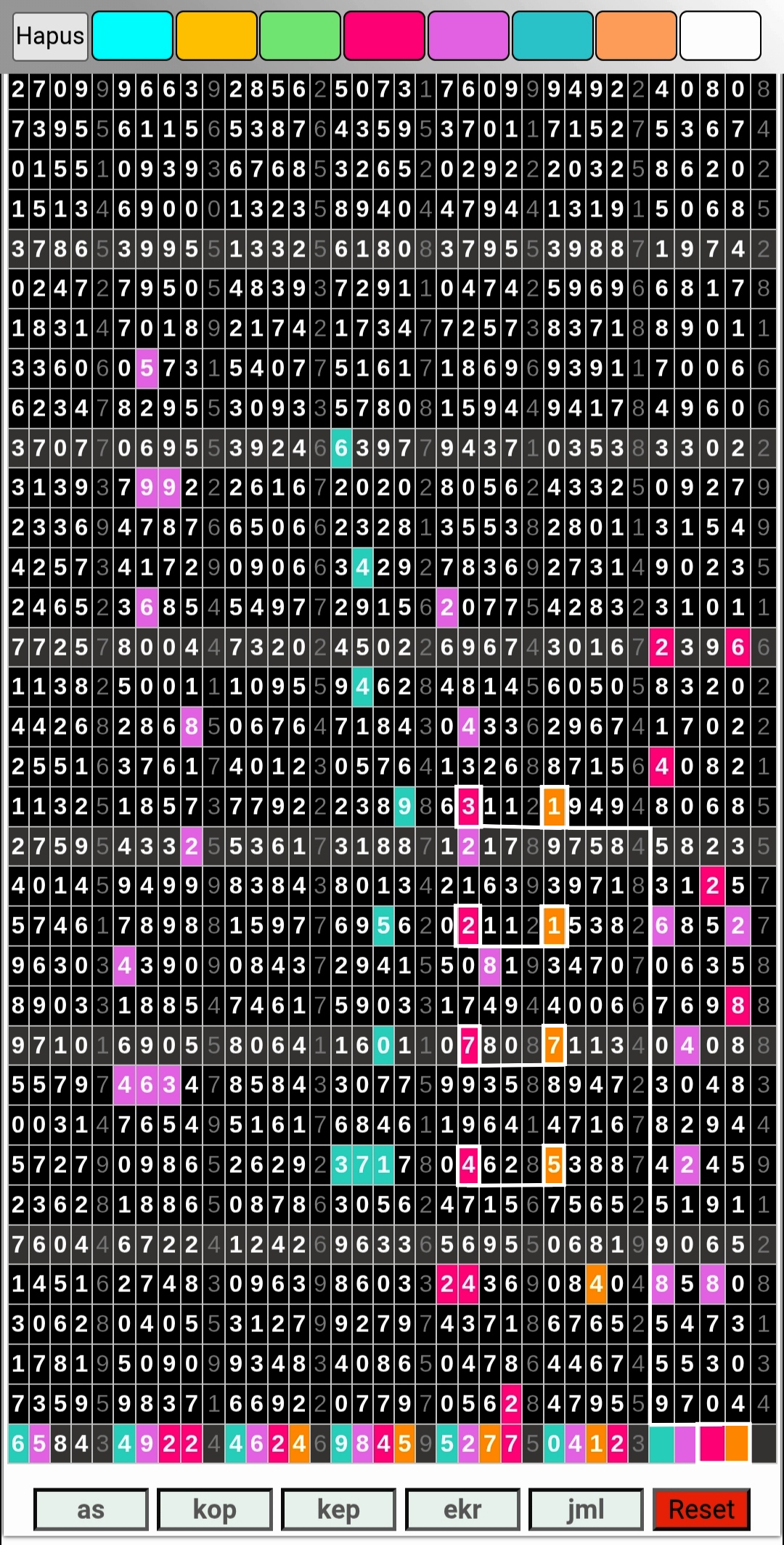 | Rumus Angka Mati berdasarkan kepala harian | 04 05 06 07 09 10 15 17 18 20 21 29 30 31 32 41 42 43 53 54 61 62 64 65 72 73 75 82 83 84 85 86 87 93 94 95 96 97 98 |