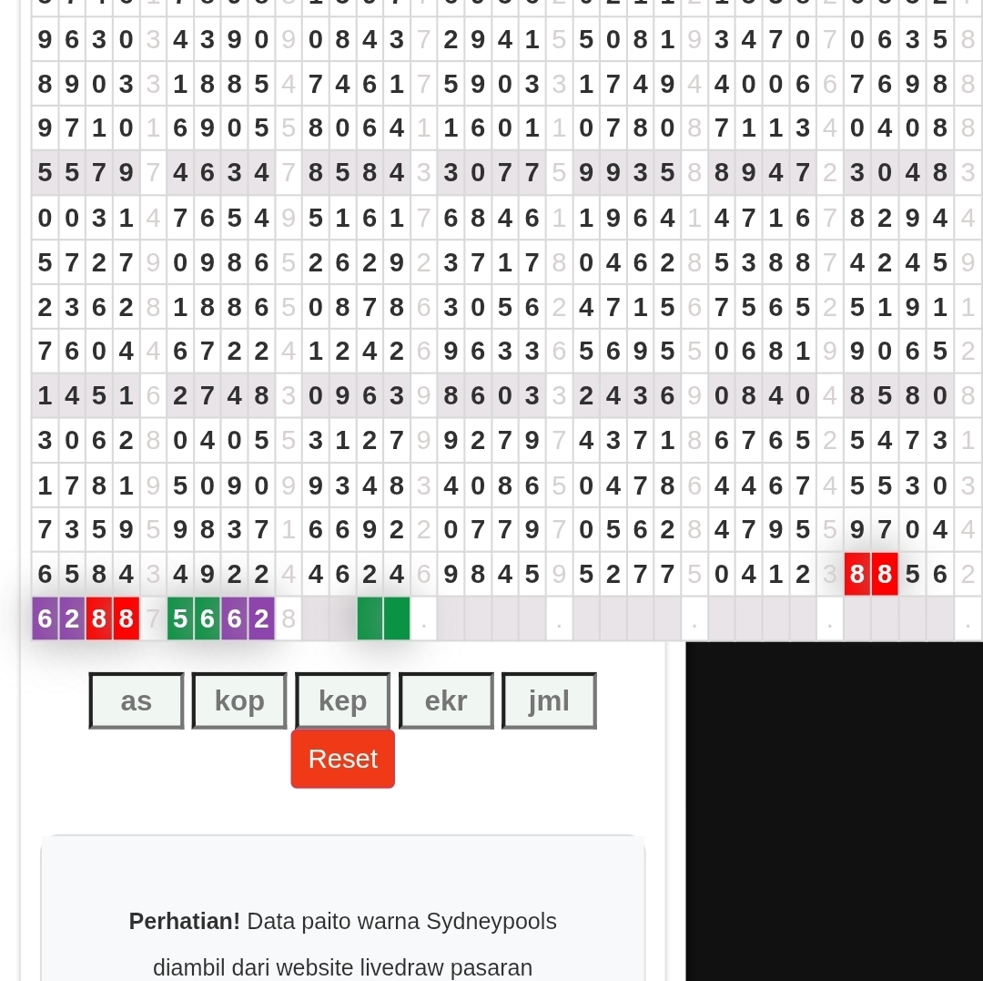 Prediksi Sydneypools Rabu, 03-12-2025 Merupakan Prediksi Otomatis yang menggabungkan Metode Kalender Togel Dengan LN Generator yang akurasi prediksinya sudah kita ketahui bersama. Jadi harap Maklum Jika kadang meleset Prediksi Sydneypools kita. Jadikan ini sebagai perbandingan saja dan tetap Utamakan karya sendiri