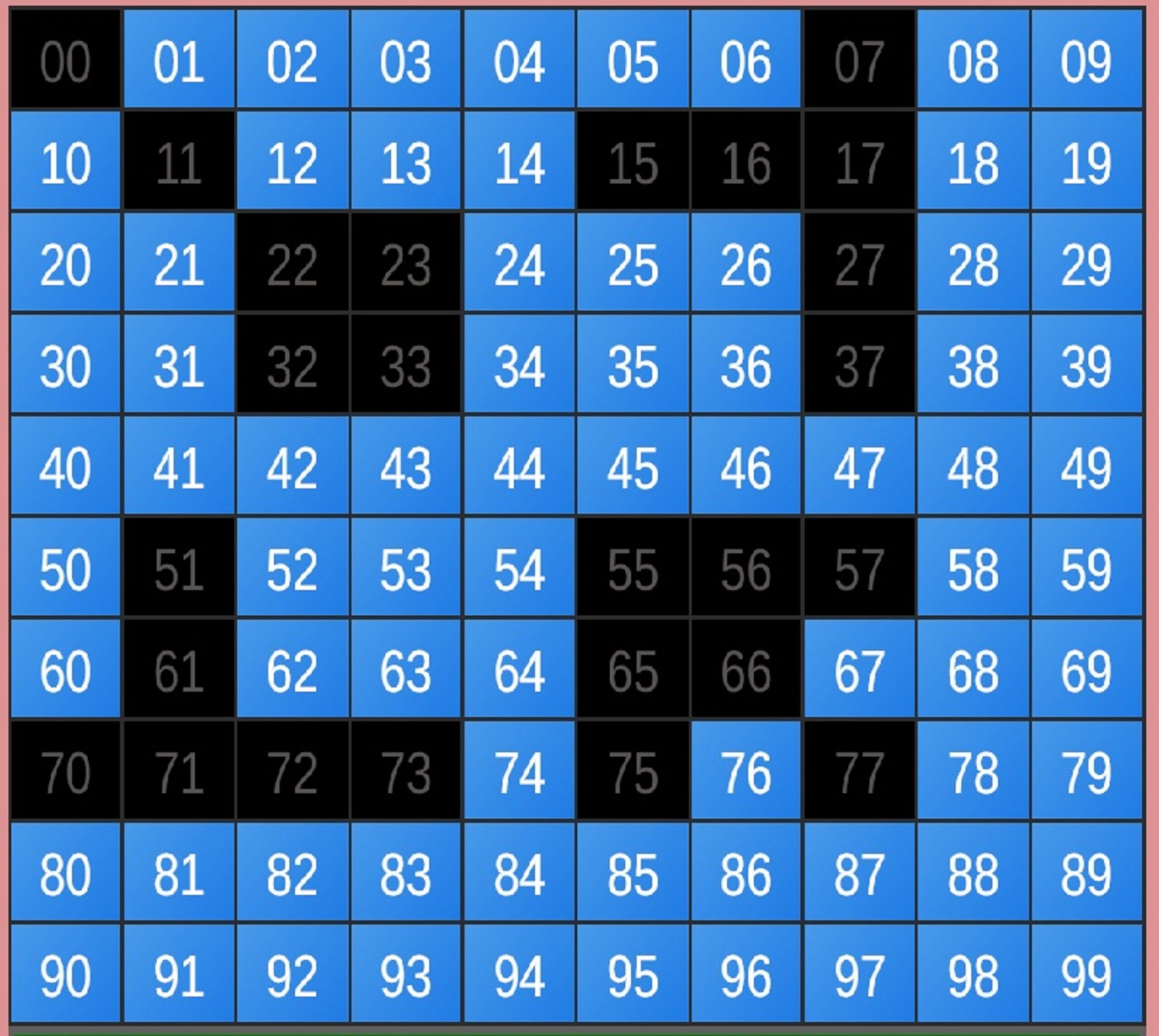 | Rumus Angka Mati berdasarkan kepala harian | 07 08 09 10 18 19 20 21 29 31 32 40 42 43 49 50 51 53 60 61 62 63 64 65 71 72 73 74 75 76 82 83 84 85 87 93 95 96 98 |