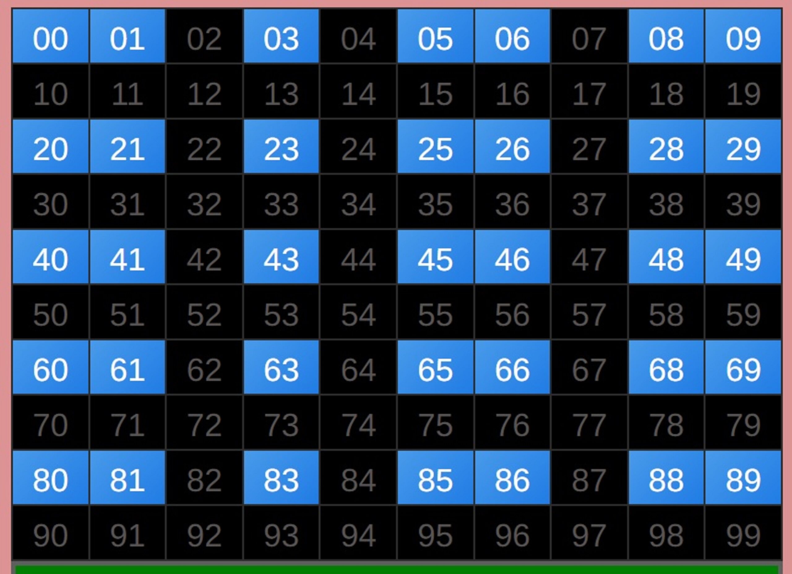 | Rumus Angka Mati berdasarkan kepala harian | 04 05 06 07 08 09 10 15 16 17 18 21 26 28 29 30 31 32 41 42 43 52 53 54 64 65 72 73 75 76 83 84 86 93 94 95 96 97 98 |