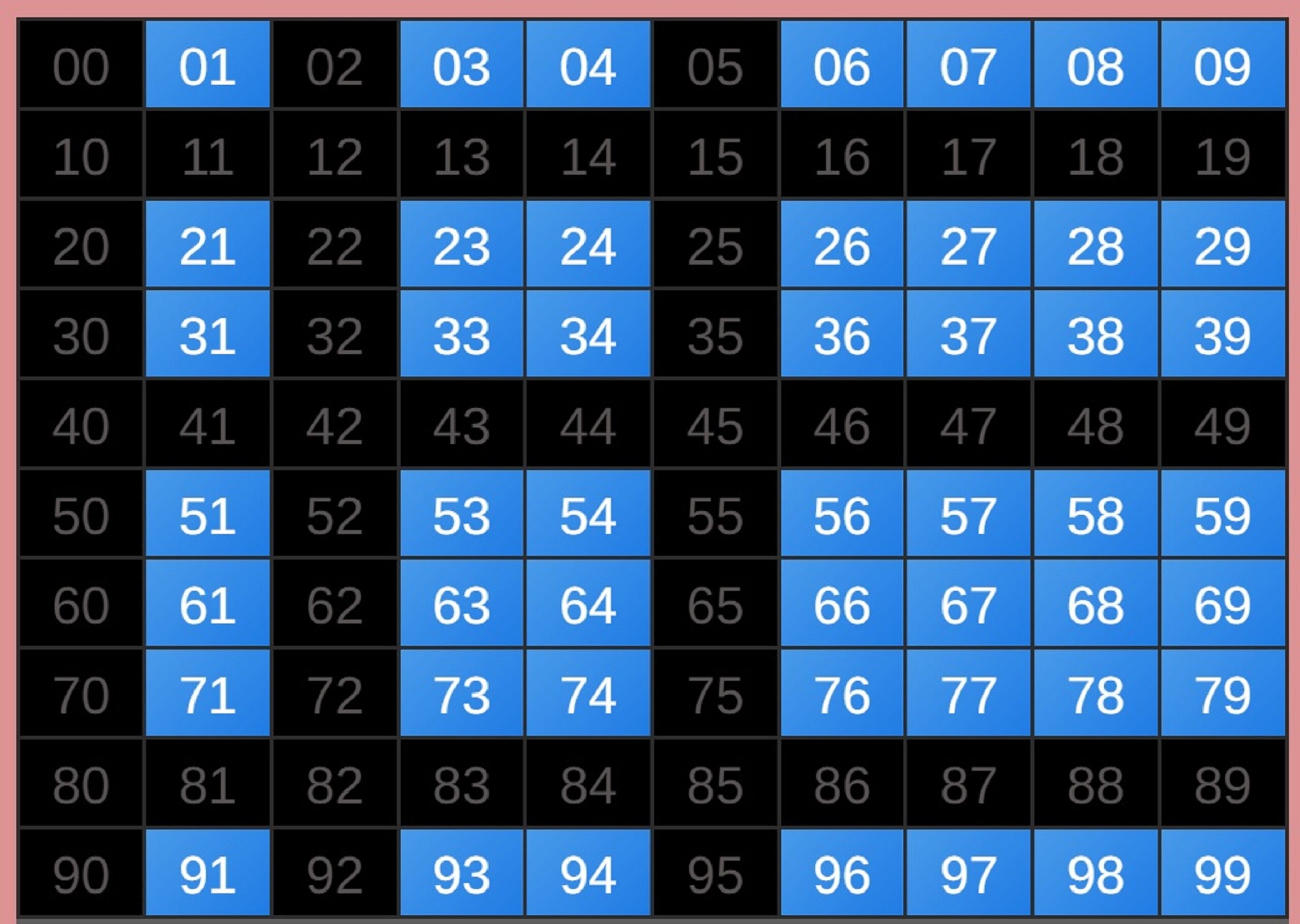 | Rumus Angka Mati berdasarkan kepala harian | 05 06 08 10 15 16 17 18 19 20 21 26 27 28 29 30 32 37 38 39 40 41 43 48 52 53 54 63 64 65 74 75 76 86 87 94 95 97 98 |