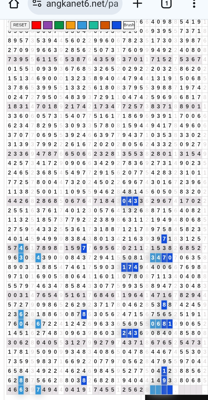 | Rumus Angka Mati berdasarkan kepala harian | 04 06 07 09 10 18 19 20 21 29 30 31 32 42 43 50 51 53 54 61 62 64 71 72 73 74 75 76 82 83 84 85 86 87 93 94 95 96 98 |
