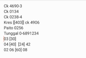Prediksi Ini Berubah secara otomatis sesuai hari dan result pasaran masing-masing. Untuk melihat prediksi sebelumnya klik tombol nomor hitam diatas