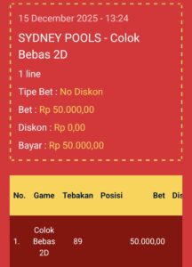 Prediksi Sydneypools Selasa, 16-12-2025 Merupakan Prediksi Otomatis yang menggabungkan Metode Kalender Togel Dengan LN Generator yang akurasi prediksinya sudah kita ketahui bersama. Jadi harap Maklum Jika kadang meleset Prediksi Sydneypools kita. Jadikan ini sebagai perbandingan saja dan tetap Utamakan karya sendiri
