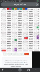 | Rumus Angka Mati berdasarkan kepala harian | 05 06 08 09 16 17 19 20 21 26 27 28 29 30 31 32 37 38 39 40 41 43 48 49 51 52 54 59 63 64 65 74 75 76 85 86 87 97 98 |