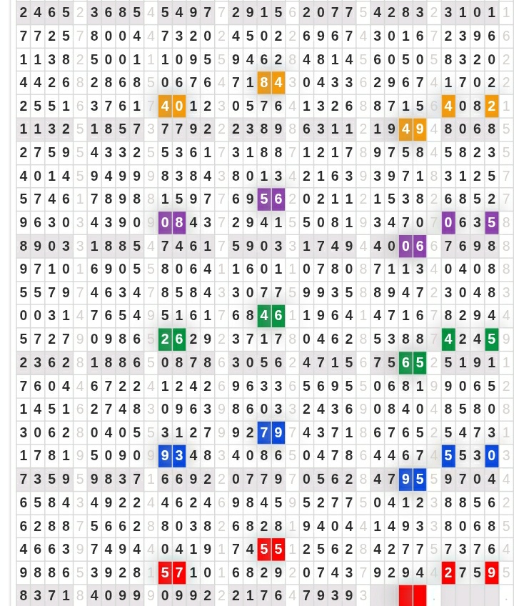 | Rumus Angka Mati berdasarkan kepala harian | 04 05 06 07 08 09 10 15 16 17 18 21 26 28 29 30 31 32 41 42 43 52 53 54 64 65 72 73 75 76 83 84 86 93 94 95 96 97 98 |