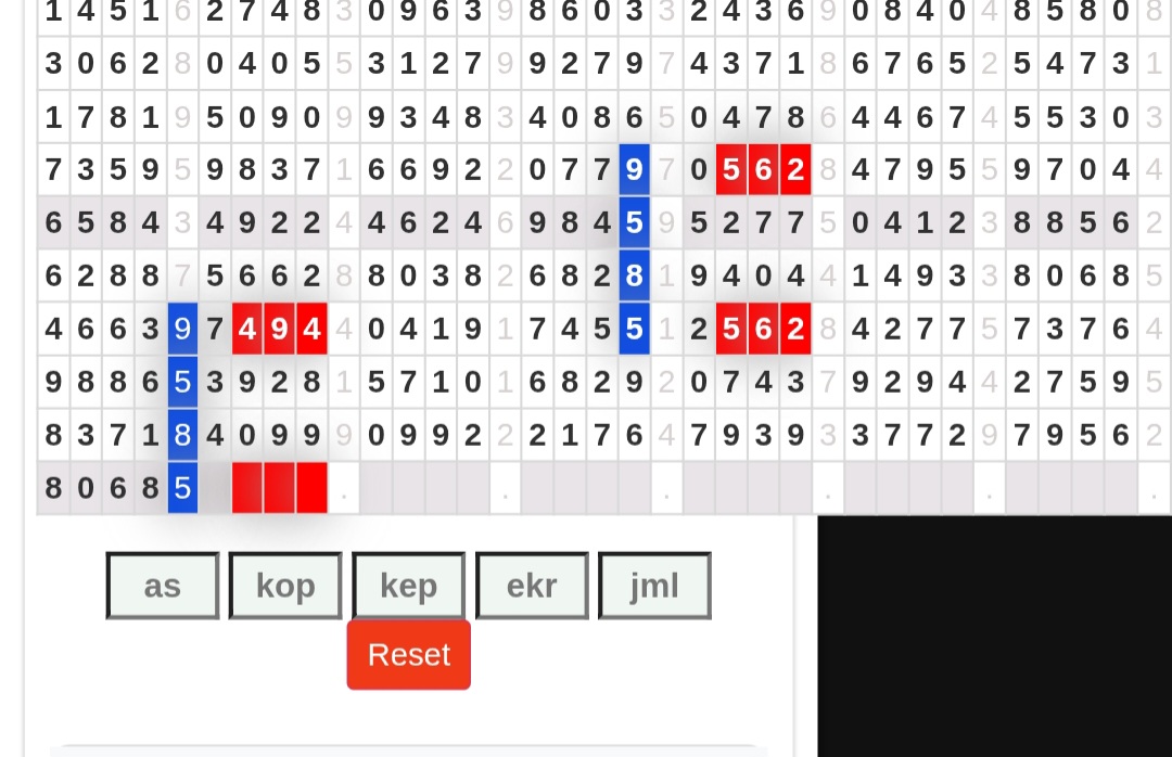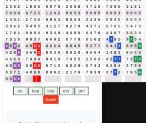 | Rumus Angka Mati berdasarkan kepala harian | 07 08 09 10 19 20 21 27 28 31 38 39 40 41 42 43 48 49 50 51 52 53 54 59 60 61 62 63 65 71 73 74 76 85 86 87 96 97 98 |