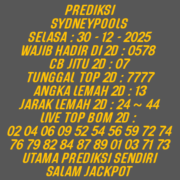 PREDIKSI SYDNEYPOOLSSELASA 30-DESEMBER-2025