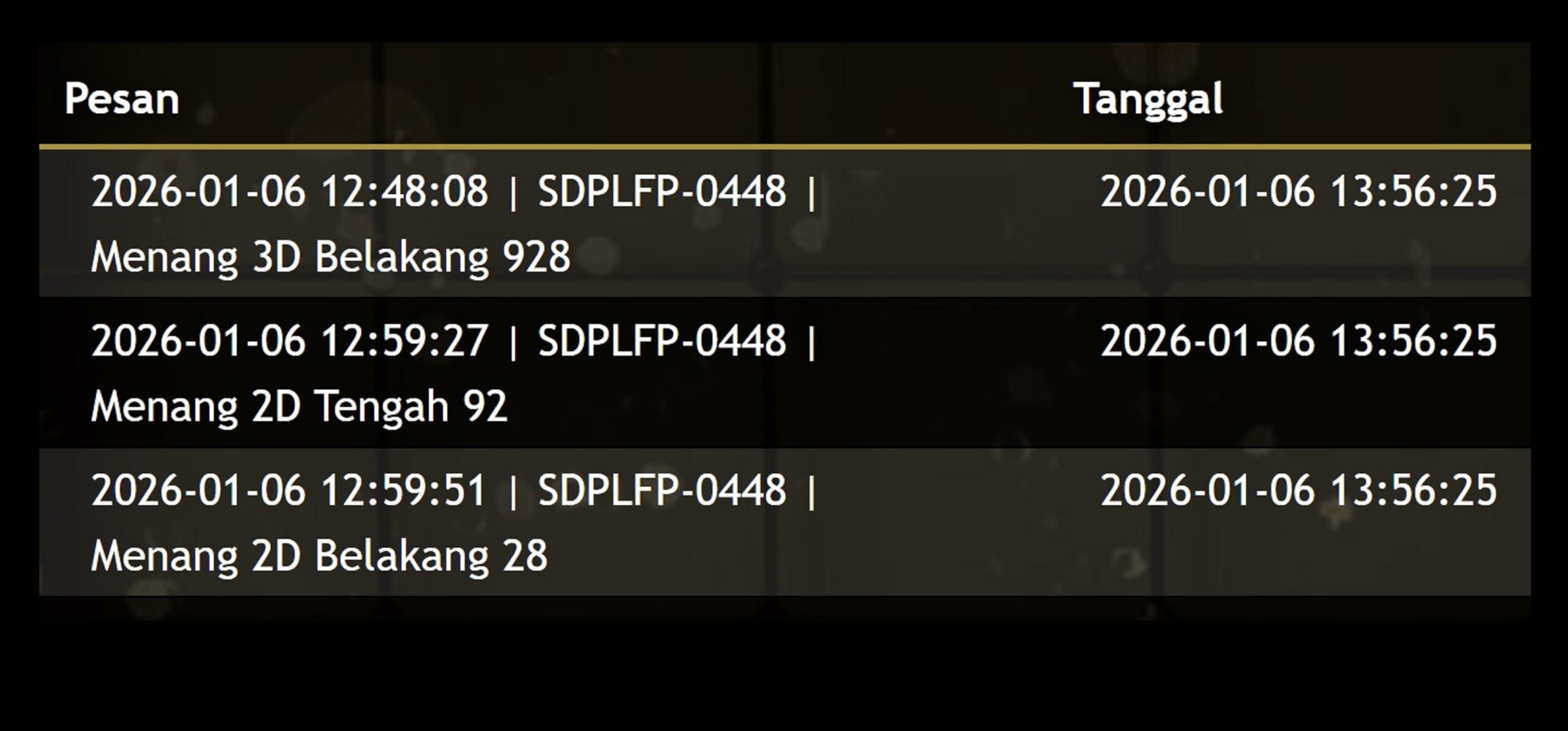 Nomor Arisan Baru Bandot