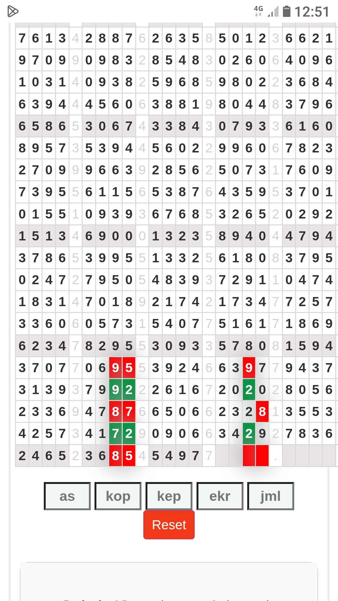 | Rumus Kontrol 4 berdasarkan kepala harian | 1236780 1456790 |