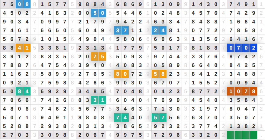 | Rumus Angka Mati berdasarkan kepala harian | 07 08 09 10 18 19 20 21 31 32 38 39 40 42 49 50 51 52 53 54 59 60 61 62 63 64 65 71 72 73 74 76 82 84 85 87 96 97 98 |