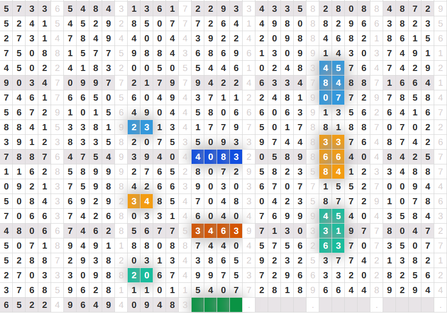 | Rumus Angka Mati berdasarkan kepala harian | 05 06 08 10 15 16 17 18 19 20 21 26 27 28 29 30 32 37 38 39 40 41 43 48 52 53 54 63 64 65 74 75 76 86 87 94 95 97 98 |