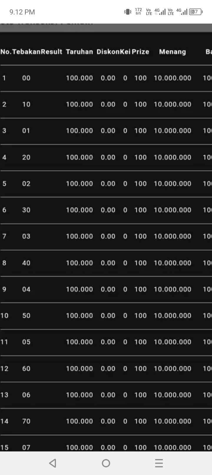 | Rumus Angka Mati berdasarkan kepala harian | 07 08 09 10 19 20 21 27 28 31 38 39 40 41 42 43 48 49 50 51 52 53 54 59 60 61 62 63 65 71 73 74 76 85 86 87 96 97 98 |