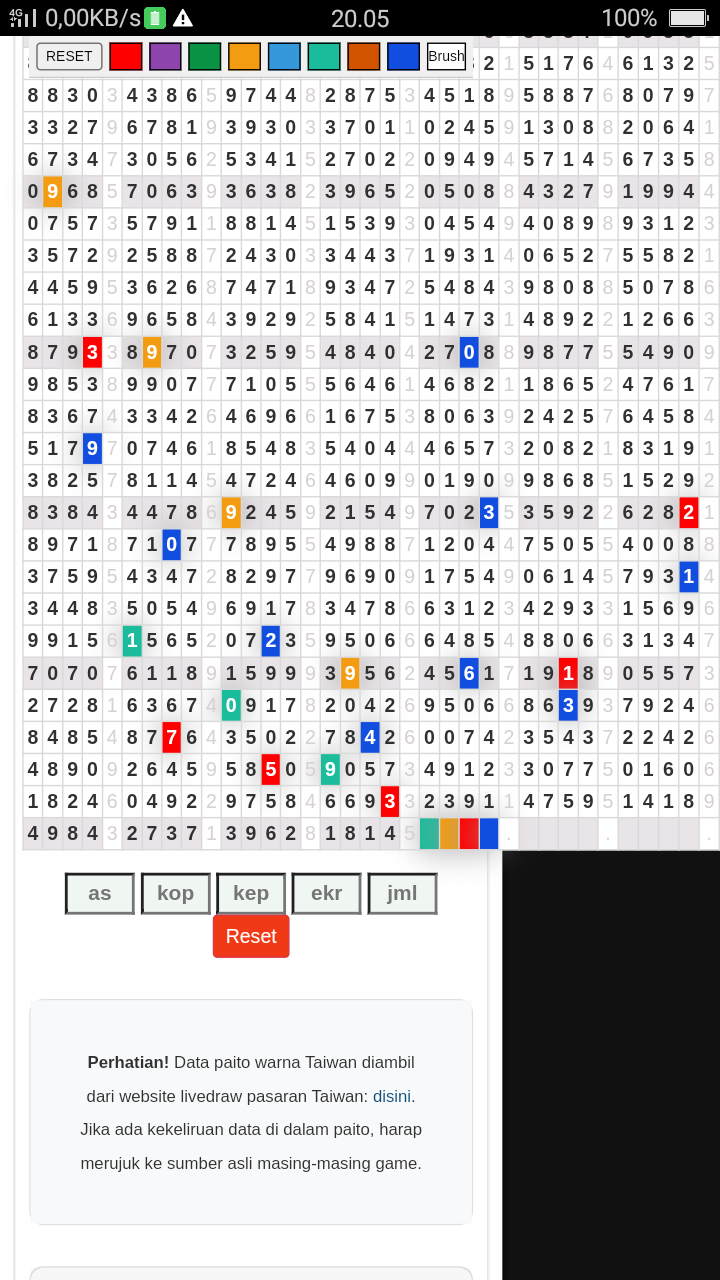| Rumus Angka Mati berdasarkan kepala harian | 05 06 08 10 15 16 17 18 19 20 21 26 27 28 29 30 32 37 38 39 40 41 43 48 52 53 54 63 64 65 74 75 76 86 87 94 95 97 98 |