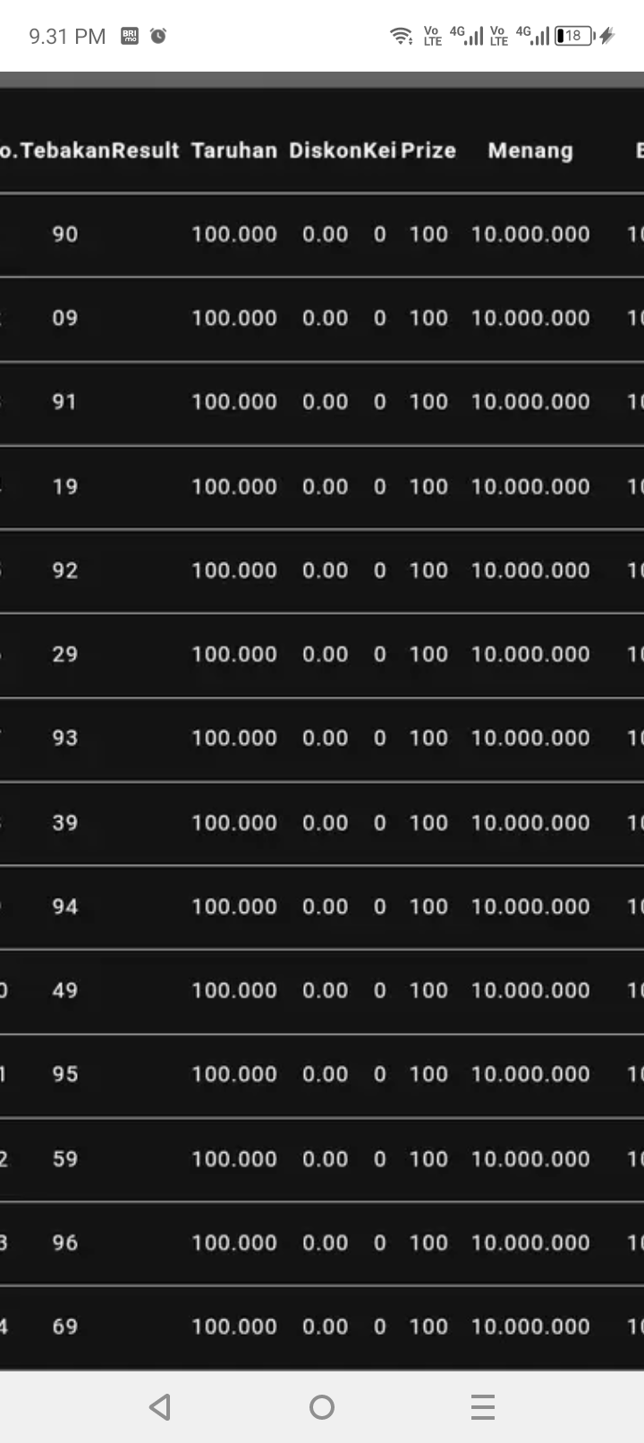 Nomor Arisan Baru Bandot