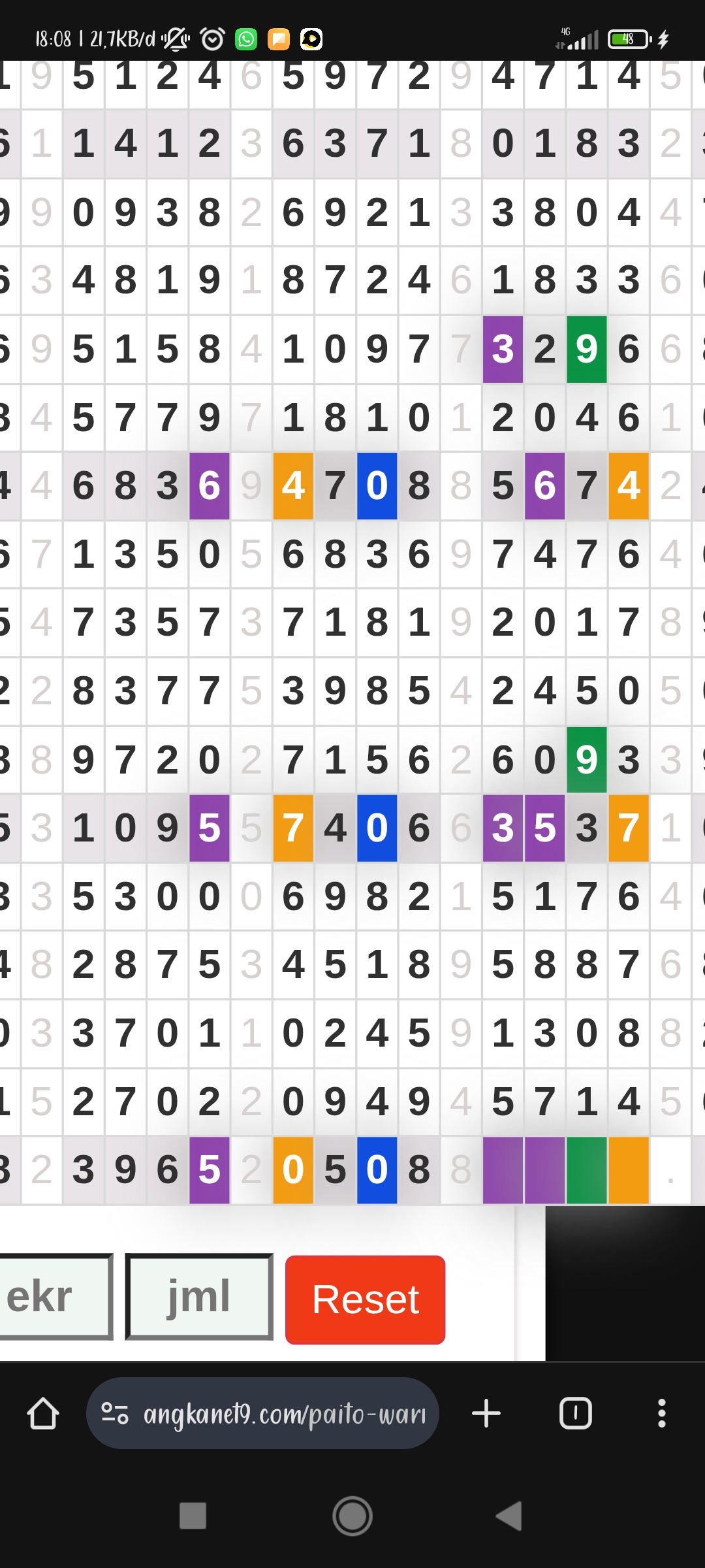 | Rumus Angka Mati berdasarkan kepala harian | 07 08 09 10 18 19 20 21 31 32 38 39 40 42 49 50 51 52 53 54 59 60 61 62 63 64 65 71 72 73 74 76 82 84 85 87 96 97 98 |