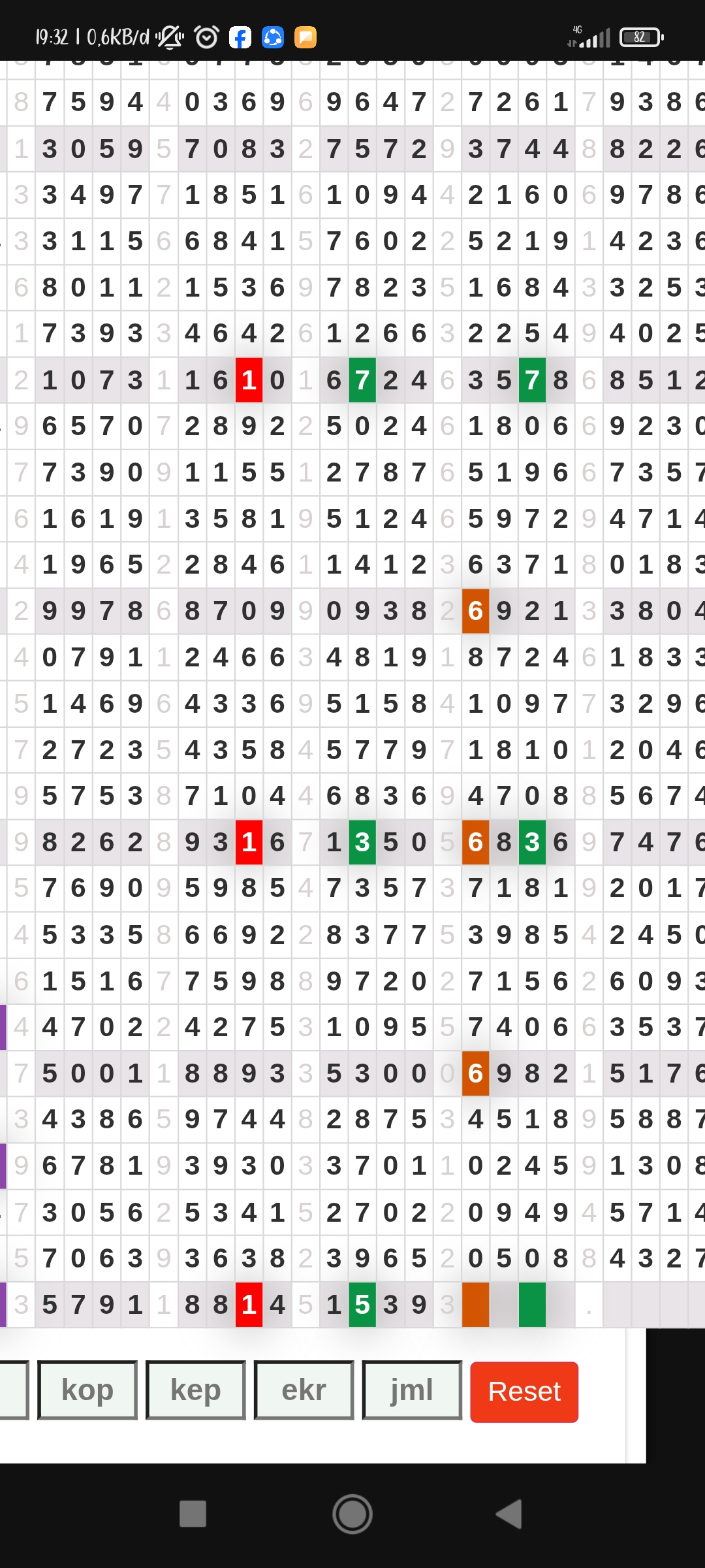 | Rumus Angka Mati berdasarkan kepala harian | 07 08 09 10 18 19 20 21 31 32 38 39 40 42 49 50 51 52 53 54 59 60 61 62 63 64 65 71 72 73 74 76 82 84 85 87 96 97 98 |