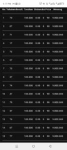 | Rumus Angka Mati berdasarkan kepala harian | 07 08 09 10 18 19 20 21 31 32 38 39 40 42 49 50 51 52 53 54 59 60 61 62 63 64 65 71 72 73 74 76 82 84 85 87 96 97 98 |